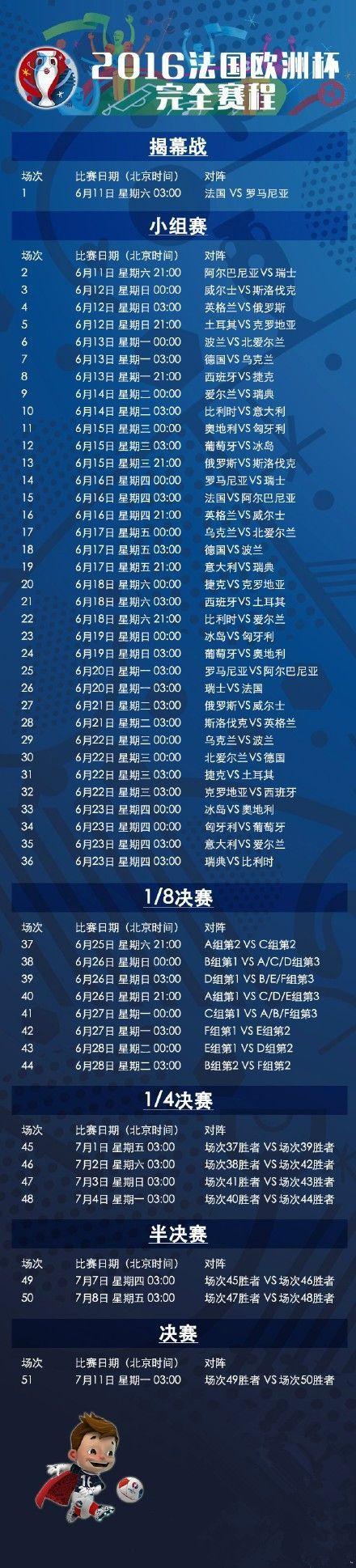 2016欧洲杯揭幕战将于2016年6月11日03:00举行,东道主法国vs罗马尼亚。