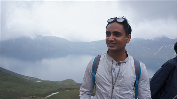 帕萨(孟加拉):到长春以后听说过长白山是一个好看的地方所以想去那儿,但是没有机会。这次来长白山了,我感觉地方太高还有好累因为跑了差不多1400多个台阶,但是到了后,看到风景好美。谢谢你们带我来长白山了。