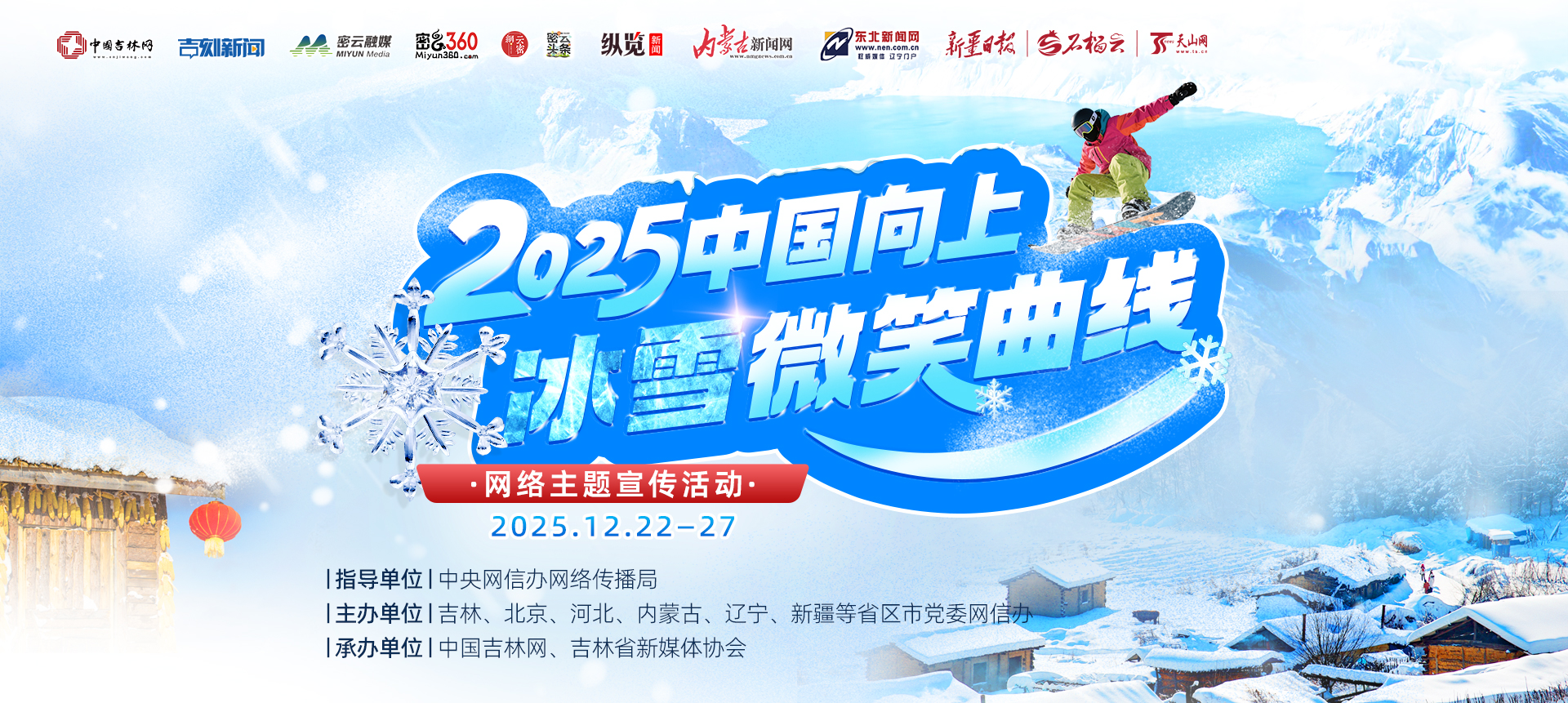 “2025中国向上·冰雪微笑曲线”网络主题宣传活动在吉林省启动 12月23日,由中央网信办网络传播局指导,吉林、北京、河北、内蒙古、辽宁、新疆等6省(自治区、直辖市)党委网信办联合主办的“2025中国向上·冰雪微笑曲线”网络主题宣传活动在吉林省延边州正式启动。