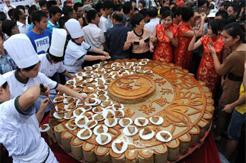 月饼是久负盛名的汉族传统小吃之一,中秋节节日食俗。其中广式、京式、苏式、潮式,滇式等月饼被中国南北各地的人们所喜爱。月饼圆又圆,又是合家分吃,象征着团圆和睦,在中秋节这一天是必食之品。古代月饼被作为祭品于中秋节所食。据说中秋节吃月饼的习俗于唐朝开始。北宋之时,在宫廷内流行,但也流传到民间,当时俗称“小饼”和“月团”。发展至明朝则成为全民共同买过的饮食习俗。时至今日,品种更加繁多,风味因地各异。