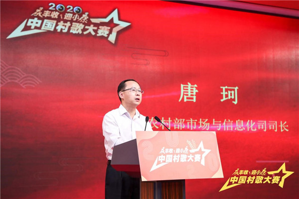 中国农民丰收节组织指导委员会办公室主任、农业农村部市场与信息化司司长唐珂在启动仪式上指出,今年是决战决胜脱贫攻坚、全面建成小康社会收官之年。按照今年中央一号文件要求,以“庆丰收、迎小康”为主题办好中国农民丰收节具有特殊重要意义。组织指导委员会办公室策划安排了一系列重大活动,中国村歌大赛完全契合丰收节的初衷和使命。村歌,作为一种民间歌谣创作方式,充满乡土气息,浸润着田野芬芳,反映着村庄的历史文化和新风新貌,抒发着农民对美好生活的热爱和向往,是中华民族文化传承中一种重要方式。同时,村歌也能奏响时代强音,把握时代脉搏。中国村歌大赛要紧跟时代步伐,突出“庆丰收、迎小康”主题,唱出优良的家风,唱出丰收的喜悦,唱出浓浓的乡愁,唱出发展的干劲,为全国人民献上一场展现农村新风貌的视听盛宴。