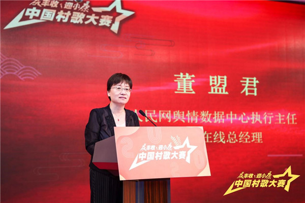 人民网舆情数据中心执行主任、人民在线总经理董盟君在致辞时说,村歌大赛作为“丰收节”的重要组成部分,要办出影响力,还要做好传播工作,要搭建全媒体传播矩阵,丰富传播内容形态。人民网及人民网舆情数据中心将会在活动的整体推进过程中,及时掌握舆论反馈,广泛传播乡村好声音,为活动保驾护航,为丰收喝彩加油。