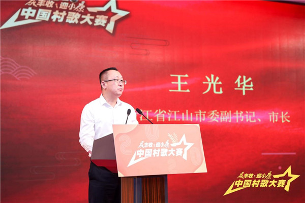 浙江省江山市委副书记、市长王光华在致辞时介绍,近年来,江山市加快发展文化事业,大力实施“文化强市”战略,目前江山三分之二以上行政村拥有自己的村歌,作品累计荣获国家、省级荣誉20多项,被誉为“中国村歌之乡”。江山市委、市政府将精心组织、全力以赴,以此次大赛为契机,以村歌文化为载体,唱响乡村振兴好声音,凝聚文化繁荣的磅礴力量。