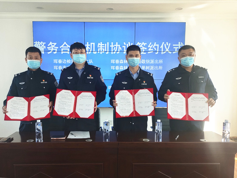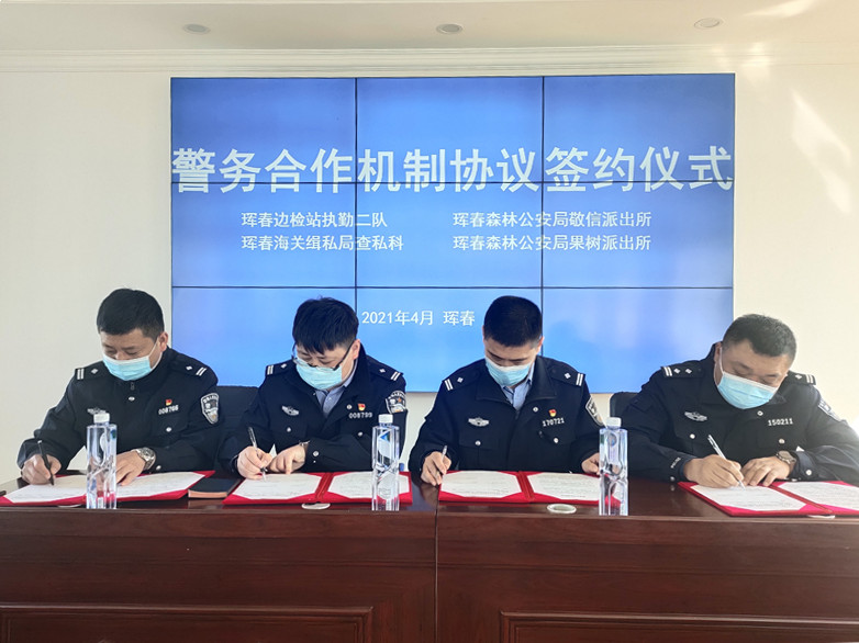 为维护国家主权、安全和社会秩序,提高预防、发现、控制和打击违法犯罪的能力,切实做好疫情期间和建党100周年庆祝活动期间边境口岸安保、维稳工作。4月20日,珲春出入境边防检查站执勤二队、珲春海关缉私局查私科、珲春森林公安局敬信派出所、珲春森林公安局果树派出所四家单位签订警务合作机制协议书。