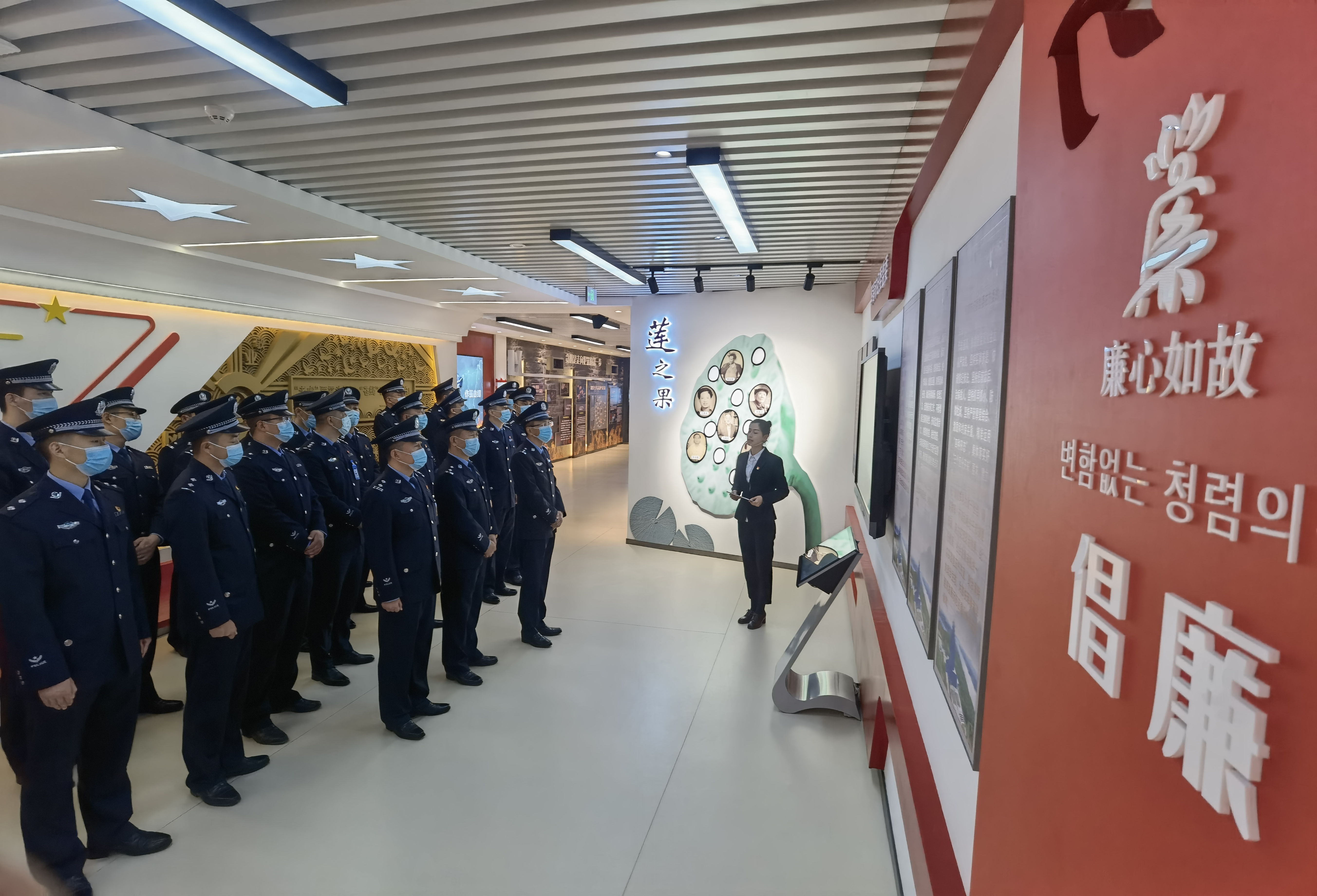 活动中,基地讲解员引领民警们依次参观了“倡廉”“警廉”“问廉”“悟廉”“践廉”“浸廉”“行廉”等九个展厅,并通过观看视频、重点讲解的方式,组织民警深入了解了党在不同时期、不同阶段开展反腐倡廉的坚定决心和有力举措,重点学习了党的十八以来全国以及驻地珲春市查处的腐败典型案例,警示广大党员干部任何时候都要严以律己、知行合一,坚决守牢法纪底线、廉政红线和政治纪律高压线,使民警们接受了深刻的思想和精神洗礼。期间,全体党员民警和退休党员干部面向党旗重温入党誓词,在庄严的宣誓中进一步领悟初心使命、增强党员意识、坚定理想信念。