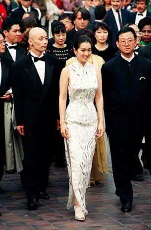 1994张艺谋导演巩俐、葛优主要的《活着》入围第47届戛纳电影节 主竞赛单元金棕榈奖(提名),斩获主竞赛单元评审团大奖和天主教人道精神奖,同时葛优拿下影帝,成为第一个华人影帝。巩俐白色旗袍在一众黑色礼服里格外显眼。