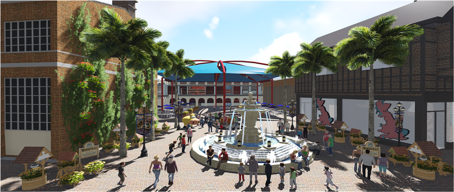 长影海南“环球100”一期主题乐园各国风情区宛如一颗颗璀璨明珠,通过贯穿各区的步行系统串联成“珍珠项链”般的流线布局。