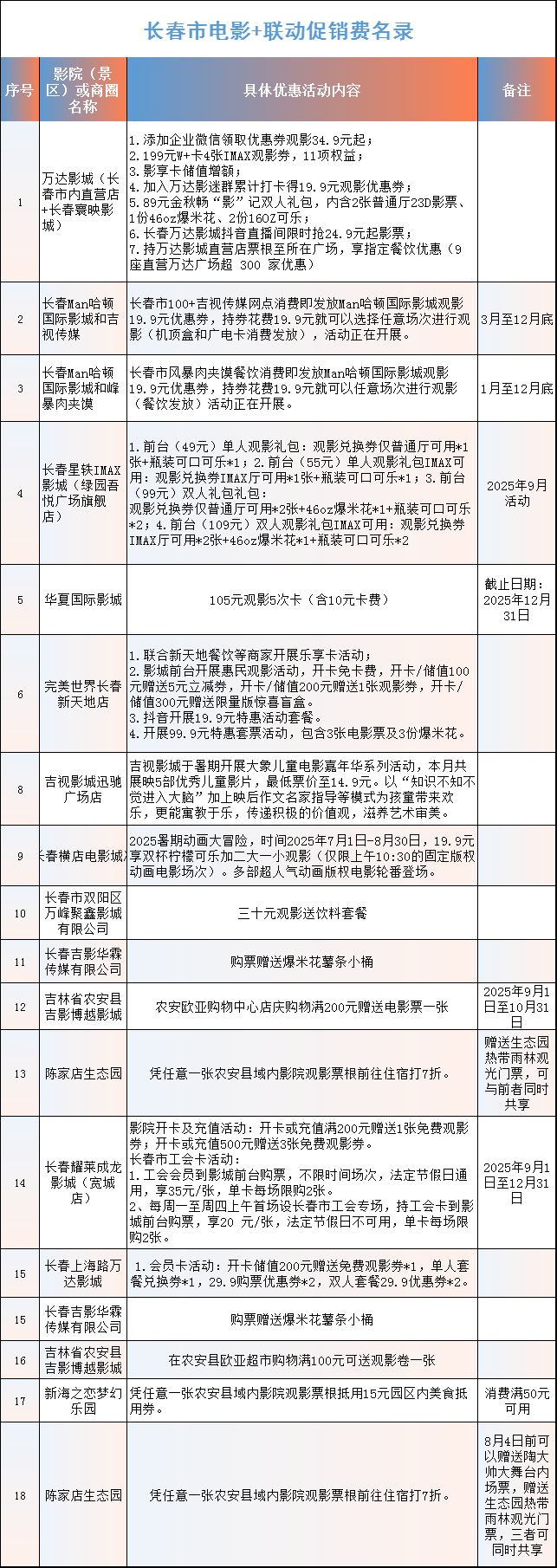 2025年长春市惠民观影消费券活动:2025年8月20日—2025年11月30日,用户可登录淘票票(APP、支付宝小程序、淘宝小程序、微信小程序)任一平台每周抢20元立减优惠,无需单独领取,每人每周可享受2次立减补贴优惠,每次优惠仅限优惠1个座位,每笔订单最多优惠2个座位,优惠自动应用于购票结算过程,活动期间限量发放,先到先得,抢完为止。