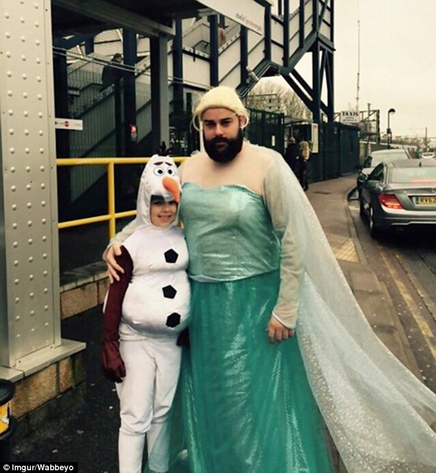 厚厚的胡须并不能阻挡这位父亲打扮成人气角色Elsa女王。