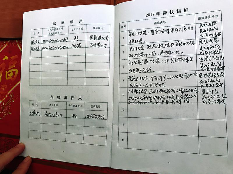 《扶贫手册》清楚地记录了对陈泽平一家的帮扶措施。