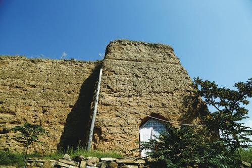 向东望去,沿着杨家川南岸,城墙夯土依然可见,依着山势起伏不断,延伸而去。这是明代修建的,从河北怀安经晋北天镇、左云、右玉到偏关的外长城。还有一段内长城从河北涞源延入山西灵丘,经繁峙、应县、代县、宁武、神池到偏关柏杨岭与外长城会合。内长城在偏关境内60多里,全为紫色泥土筑就,被喻为“紫塞”。明代古人诗云:“半壁孤城水一湾,万家烟火壮雄关。黄河曲曲涛南下,紫塞隆隆障北环。”